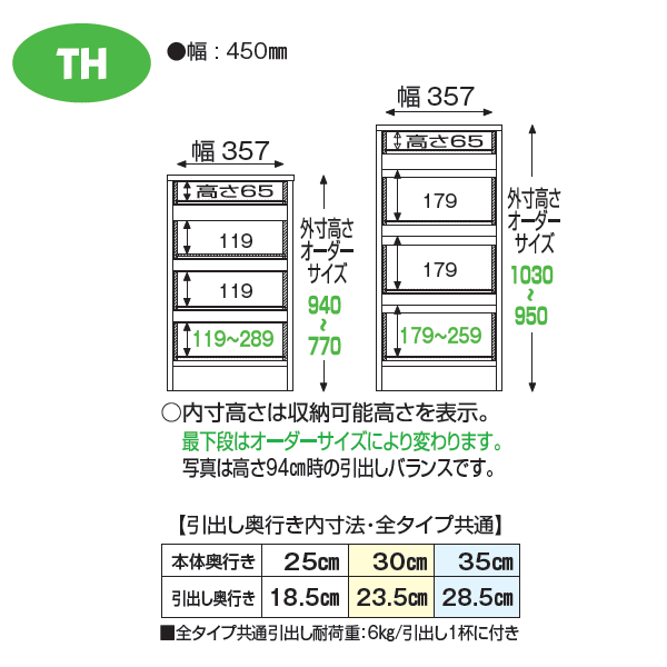 それぞれ奥行は、25cm・30cm・35cmの3タイプからお選びいただけます。